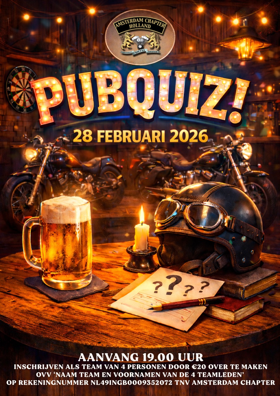<< All EventsPubquiz28 februari 2026 Share This Event 754453 DDDAYSHHHOURSMMMINSSSEC Gegevens Datum: 28 februari Tijd: 19:00 - 23:00 Locatie Clubhuis Nieuw Zeelandweg 15 Amsterdam,1045ALNetherlandsOrganisator Activity Officers E-mail activity@amsterdamchapter.nl + Google Calendar+ iCal Export« Algemene LedenvergaderingOpeningsrit »